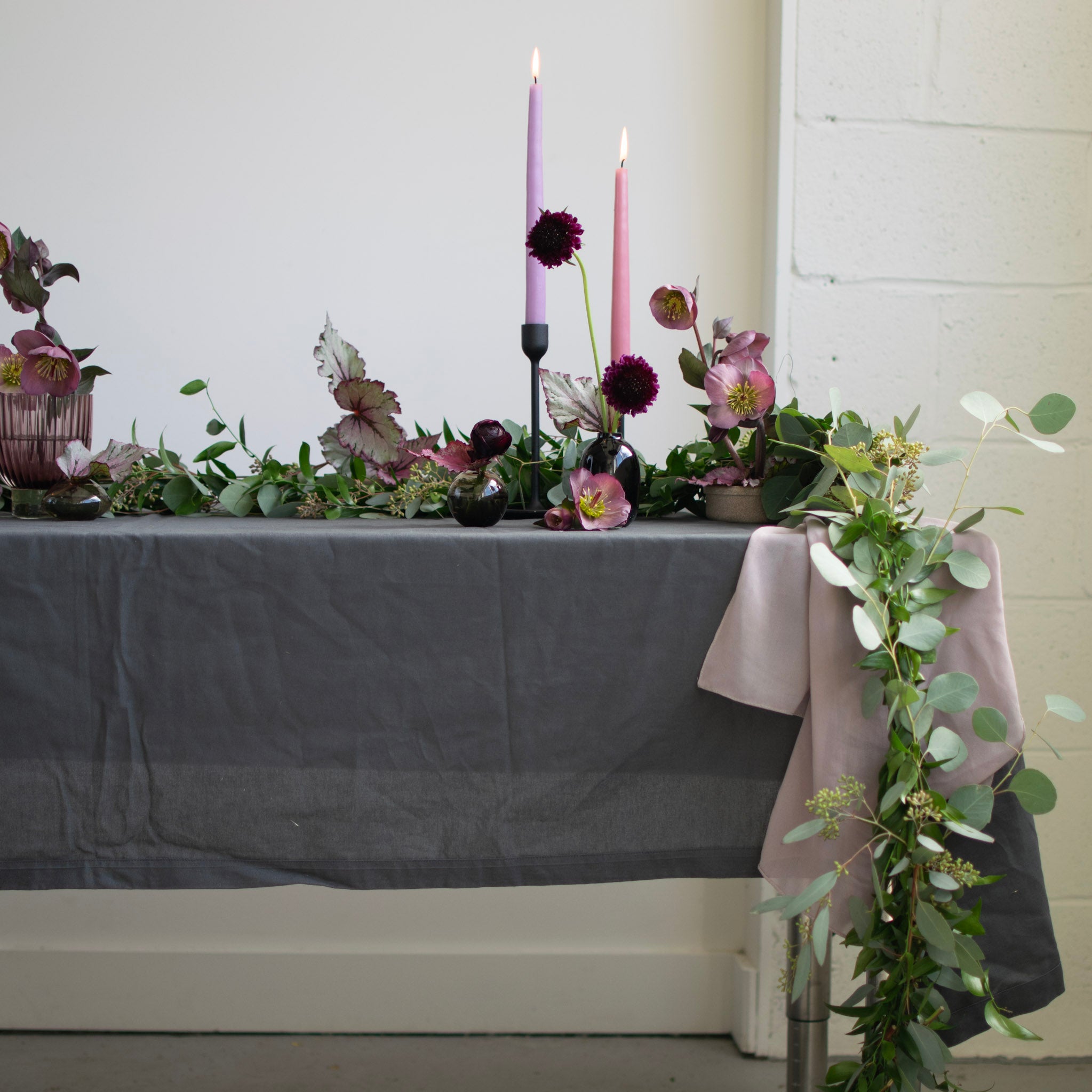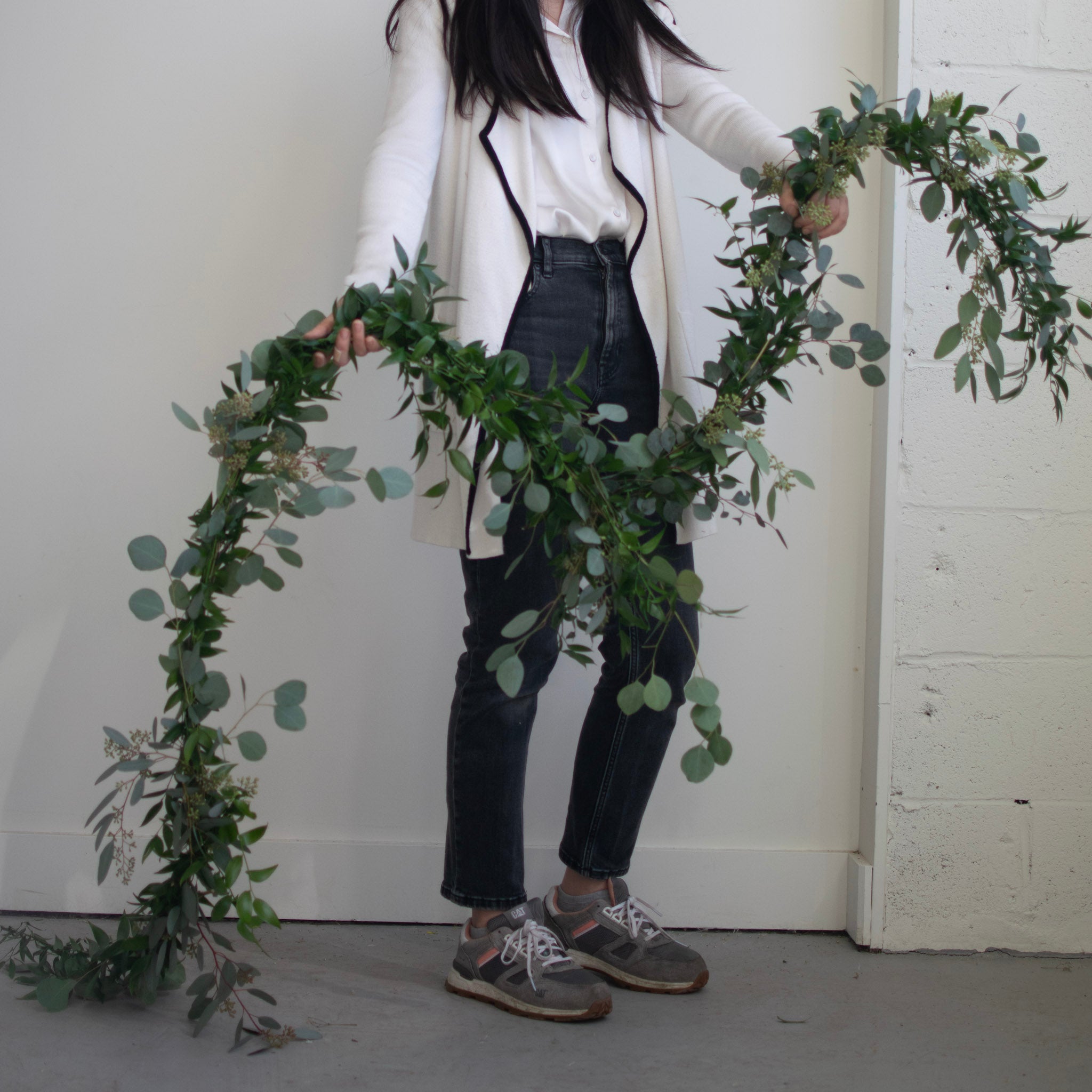 Our luxe greenery garland consists of premium Italian ruscus, seeded eucalyptus and silver dollar eucalyptus. Recommended for when you want a fuller or denser look, it pairs perfectly with any of our bud vase and mini arrangements. Sold in increments of 6 feet. Our luxe garland is approximately 6" to 8" wide.